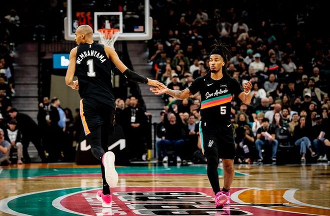上赛季打造了文班亚马和福克斯一高一快双核的圣安东尼奥马刺,由于受到了伤病的影响,导致他们没有能够在竞争激烈的西部联盟突围,获得一个季后赛的名额,新赛季在双核满血回归之后,直接率领马刺起飞,在上一场常规赛客场大胜布鲁克林篮网之后,马刺豪取联盟目前最长的11连胜,高居西部积分榜第二。