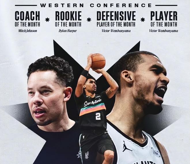 NBA月最佳诞生!马刺创神级纪录,CC联盟唯一,克神要抢最佳新秀