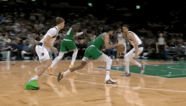 以往塔图姆是凯尔特人上线持球人,今天更多在翼侧靠无球启动,移动持球人Movement Ball Handlers,有点类似鹈鹕墨菲、黄蜂米勒的角色。