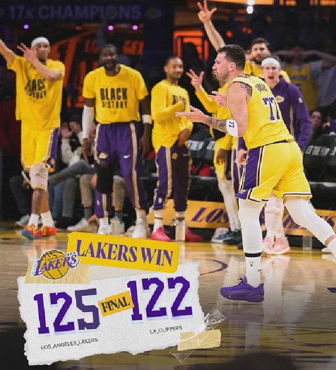 • 东契奇38+11 湖人125-122险胜快船