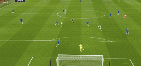 5分钟后,埃泽展现出了足够的灵活性,看到桑切斯站位靠前,埃泽选择远距离吊射,桑切斯快速回撤,将球拿到。