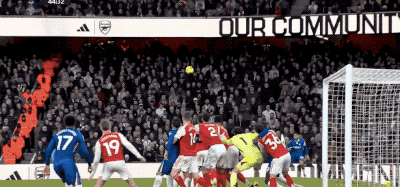 第20分钟,恩佐飞身封堵了廷贝尔的传中,阿森纳获得角球,本场比赛枪手的第一个角球,就转化为了进球。