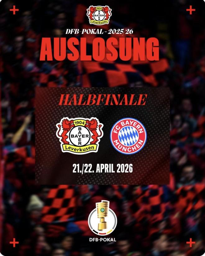 • 德国杯半决赛对阵:拜仁客战勒沃库森,斯图加特主场对弗赖堡